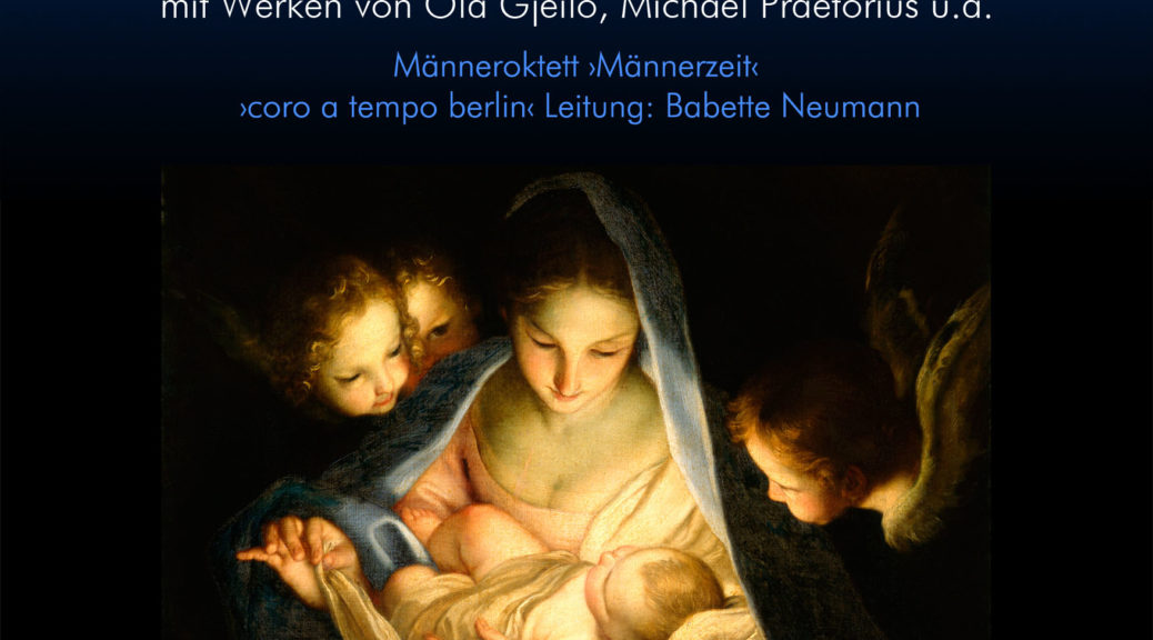Am ersten Advent, dem 1. Dezember, findet in der Friedenskirche Niederschönhausen ein außergewöhnliches Konzert statt. Fremd anmutende, aber klanglich interessante, nordisch geprägte Melodien wecken die Neugier der Zuhörer. Unter anderen werden Kompositionen von Ola Gjeilo und Michael Praetorius gesungen. Zu hören sein werden der Projekt-Kammerchor des Konzertchors „coro a tempo berlin“ sowie das Männer-Oktett „Männerzeit“ aus Mecklenburg. Es wird ein ganz besonderer Hörgenuss werden. Leitung: Babette Neumann Beginn: 17 Uhr Ort: Friedenskirche Berlin-Niederschönhausen Eintritt: 8.00 € (5.00 € ermäßigt),Kinder auf…